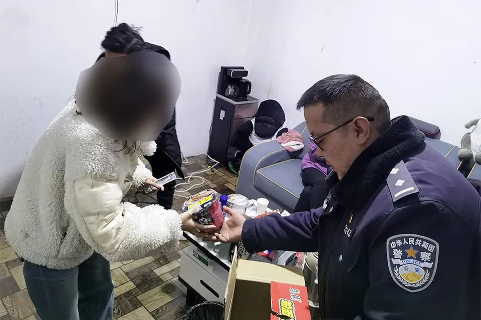 图为民警将游客安全带至派出所,并免费为他们提供食宿。