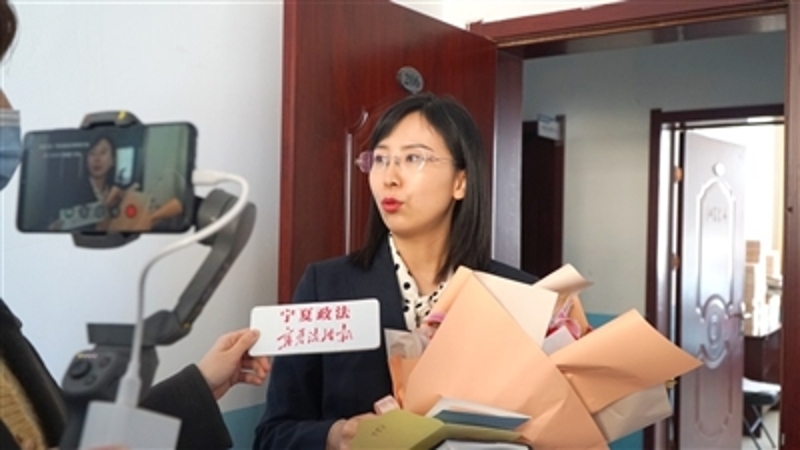 看到宁夏法治报记者送去的鲜花和节日贺卡,赵薇玮又惊又喜。她的办公桌上摆满了卷宗,身为准妈妈的她仍在为维护受害人的权益忙碌着。